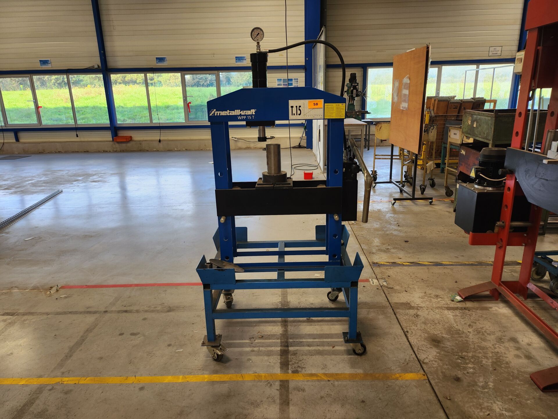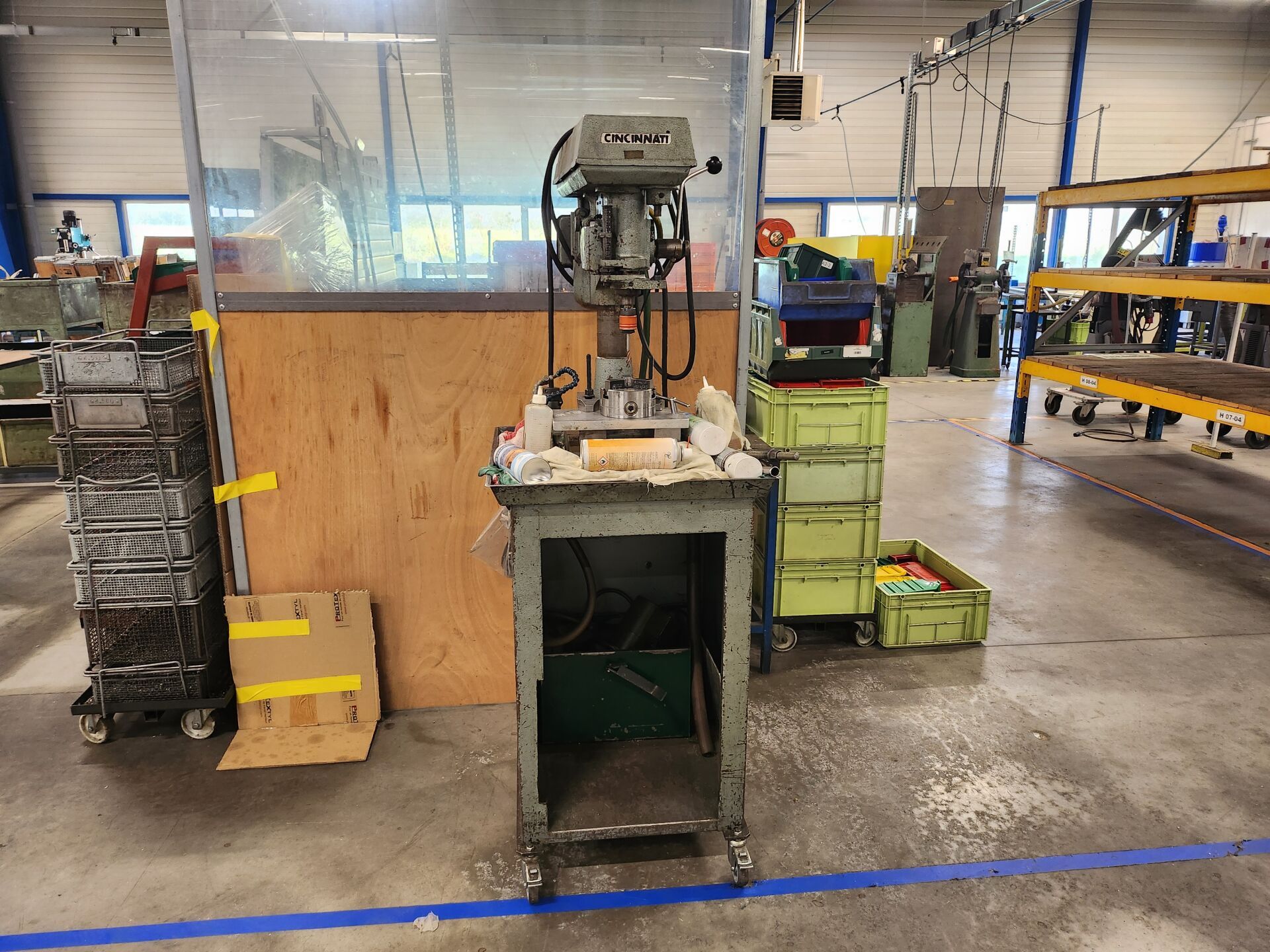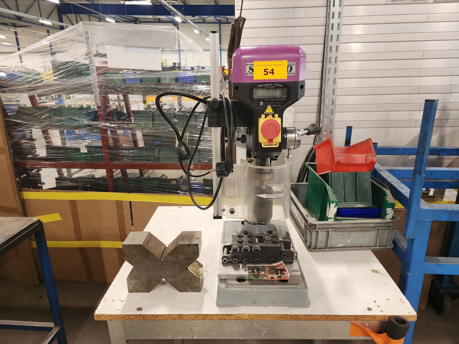 2 Presses hydrauliques, Perceuses sur colonne, 2 Tanks à meuler FEIN, Taraudeuse CINCINNATI, Mini fraiseuse SYRETTE, Colonnes de contrôle MITUTOYO et GARANTS