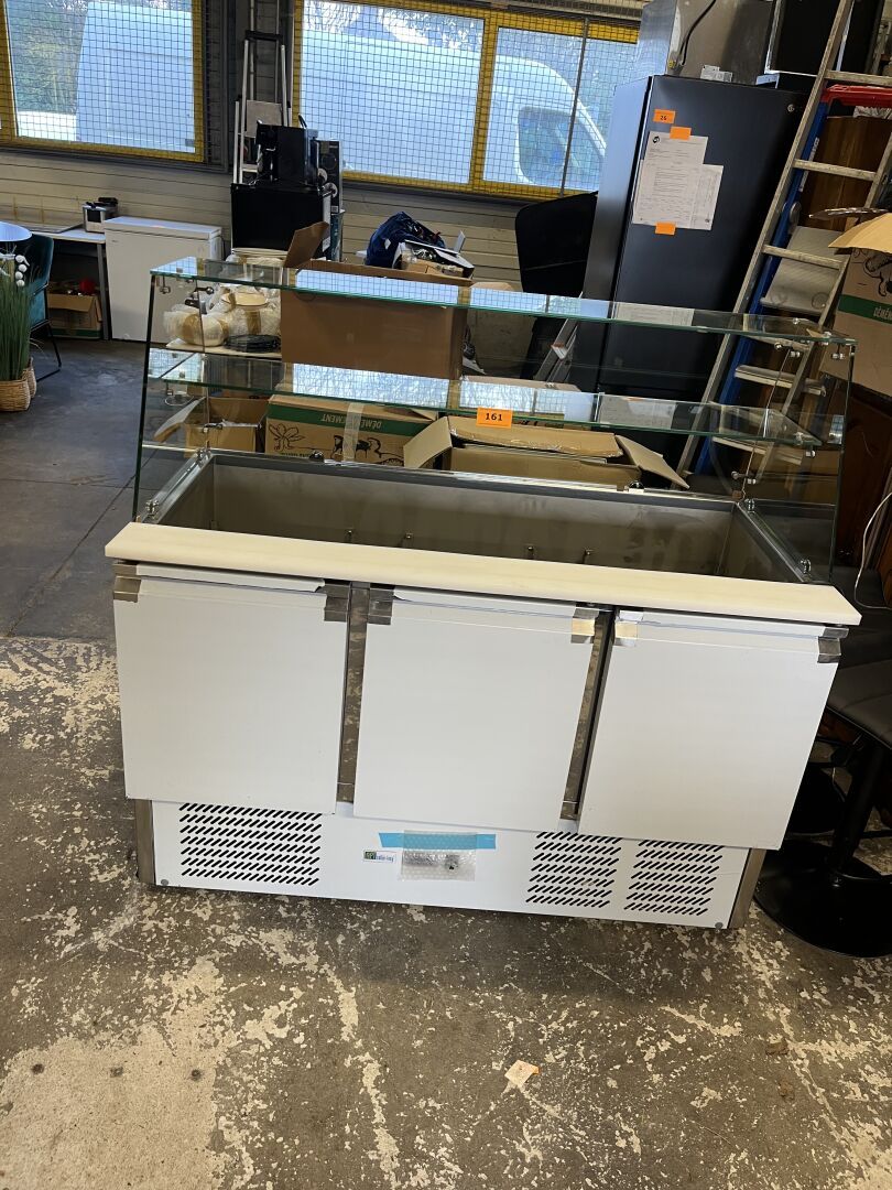 - 3 Tables de présentation plateau bois 2 tablettes en entrejambe