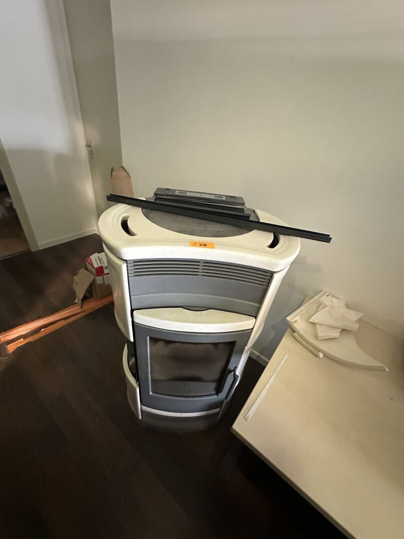 Poêle EDIL KAMIN modèle Milo, en fonte émaillée crème (1 plaque sur le côté cassée), 2011,