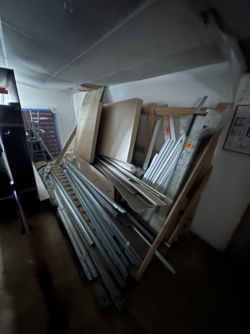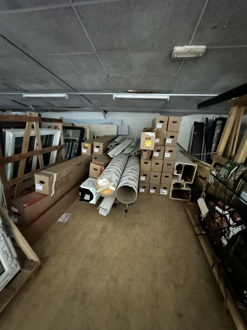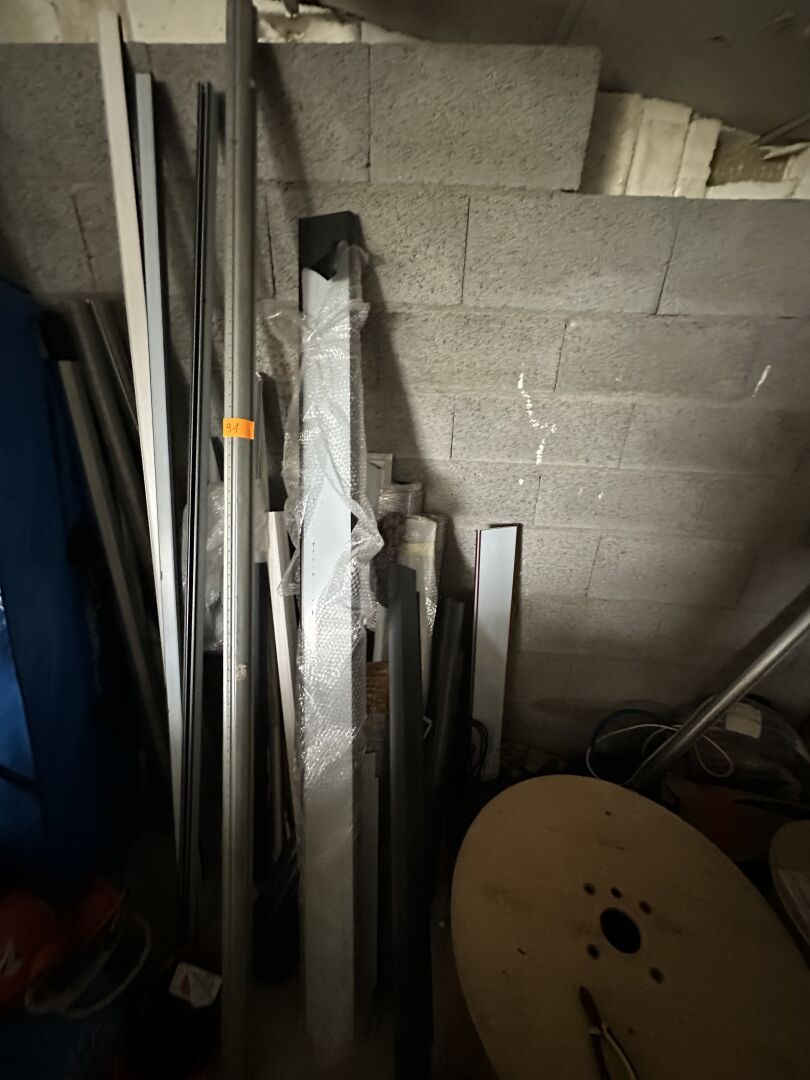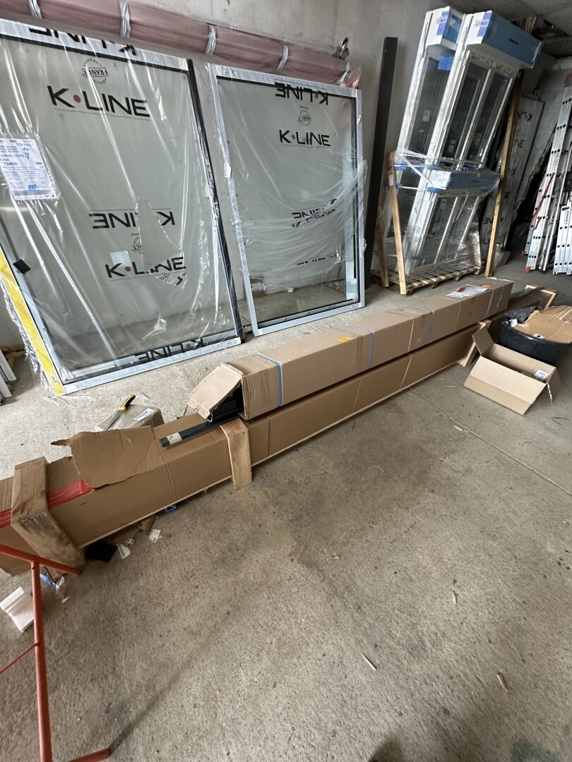 Contenu de 3 palettes : Appareillage LEGRAND, Visserie, Boulonnier, Tube de silicone, Boîte de dérivation, Forêts et Outillage.