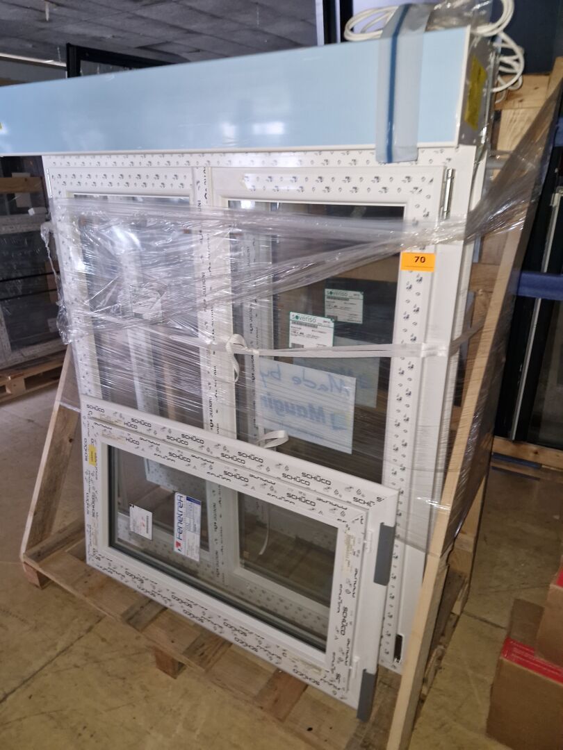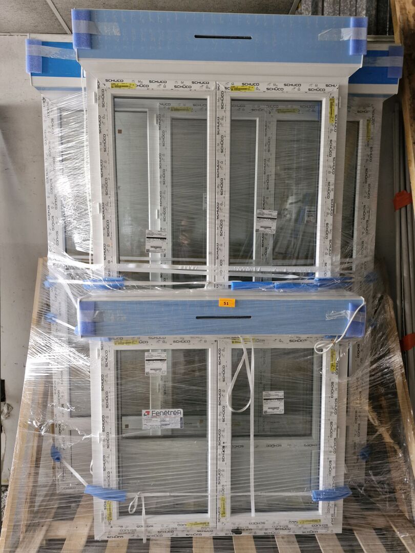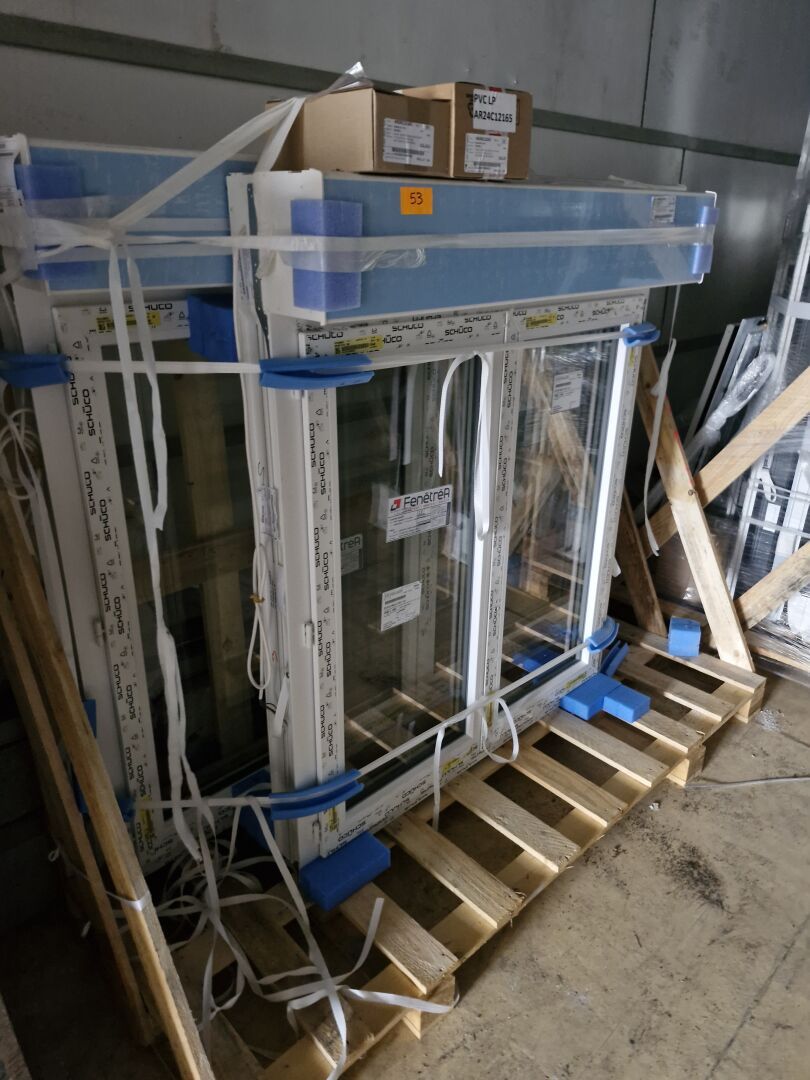 2 Fenêtres FENETREA PVC blanc,1 partie fixe vitrée, les ouvrants sont manquants