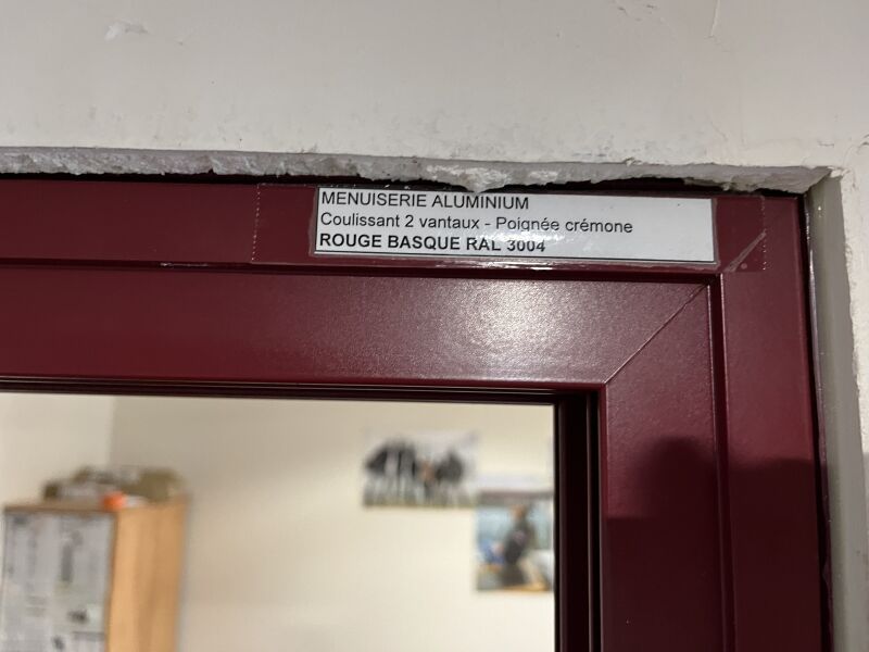 Porte fenêtre aluminium rouge basque, 2 vantaux poignée crémone