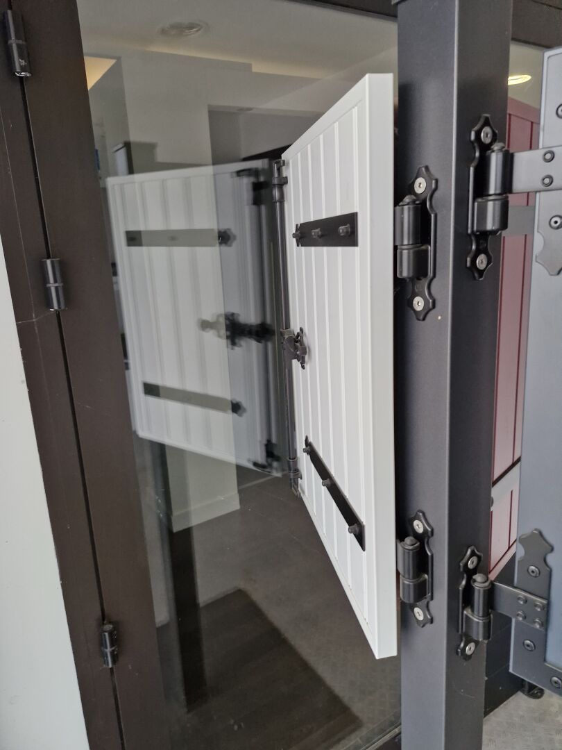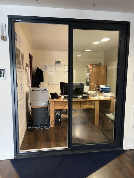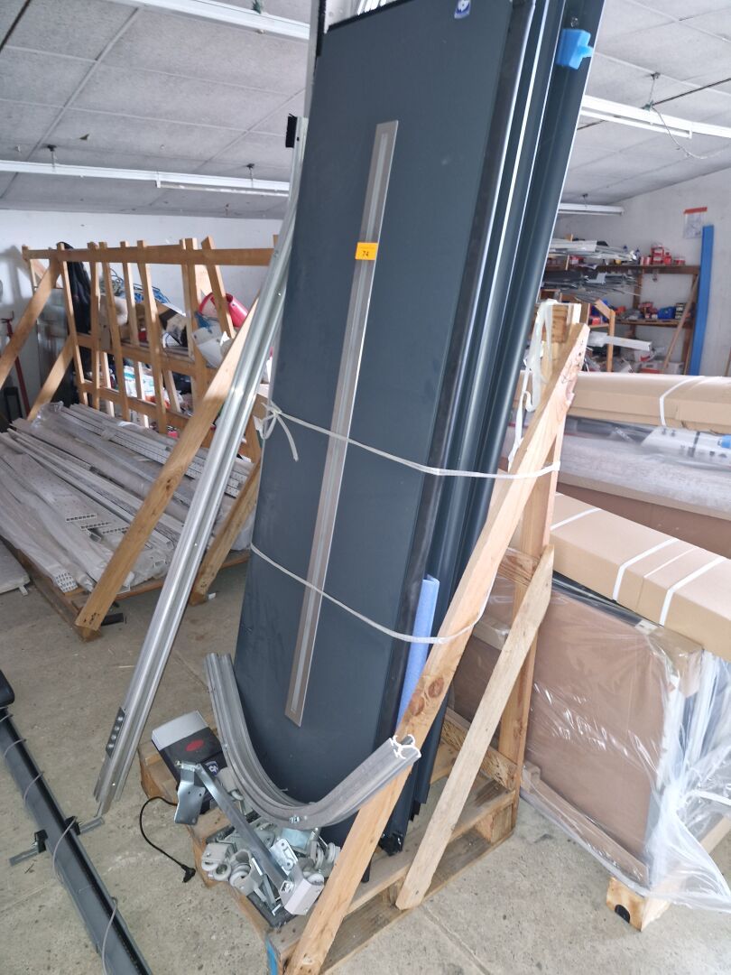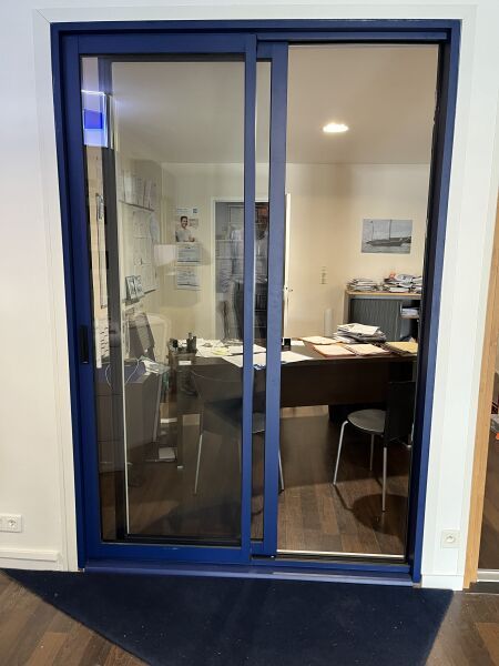 Porte fenêtre coulissante, 2 vantaux bleu canon, grande dimension hors standard