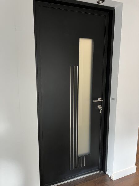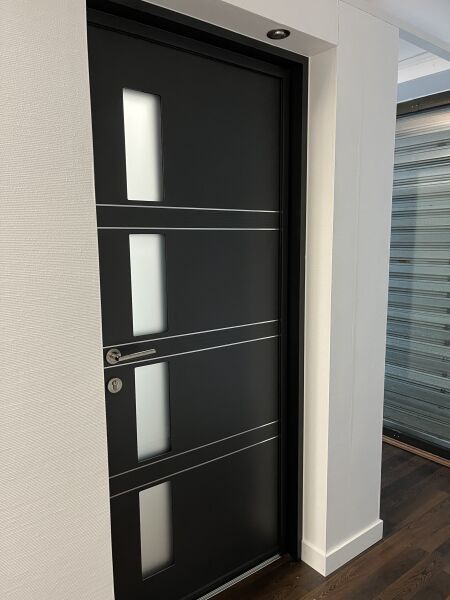 Porte d'entrée K LINE LYRA alu laqué noir et blanc intérieur
