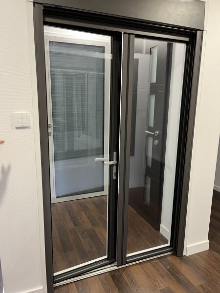Porte fenêtre 2 battants K LINE alu bicolore gris extérieur blanc intérieur