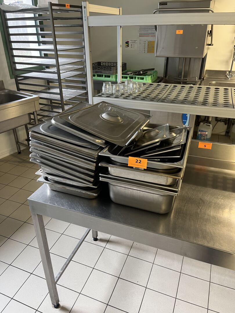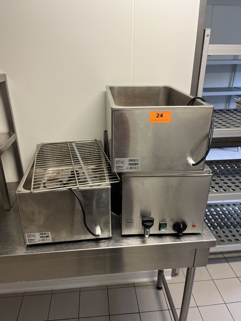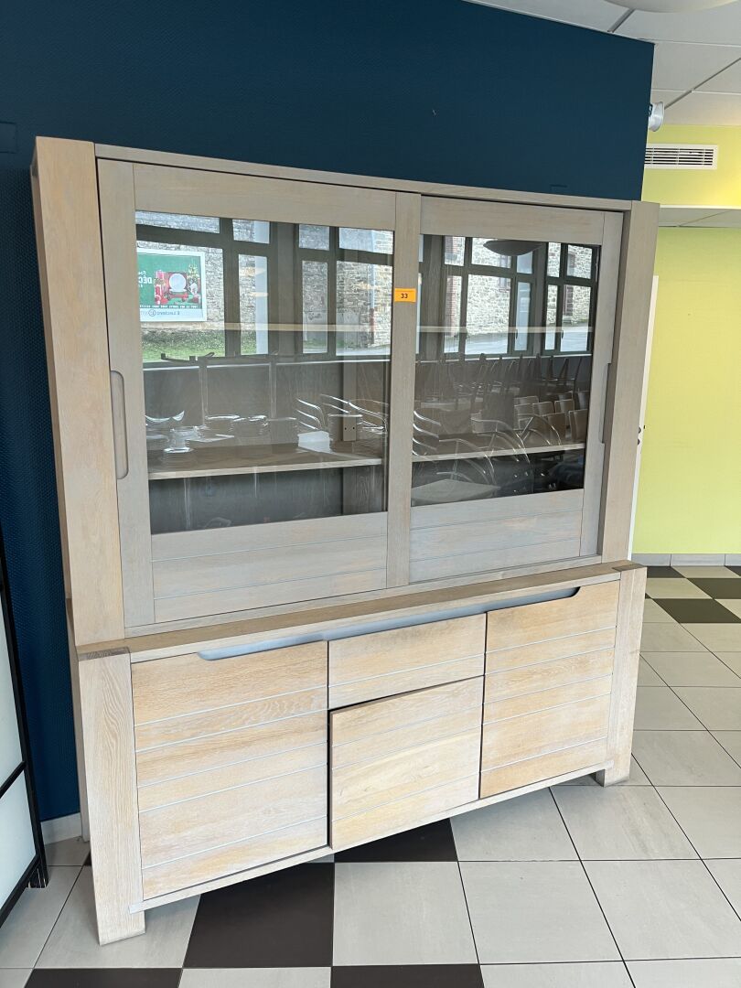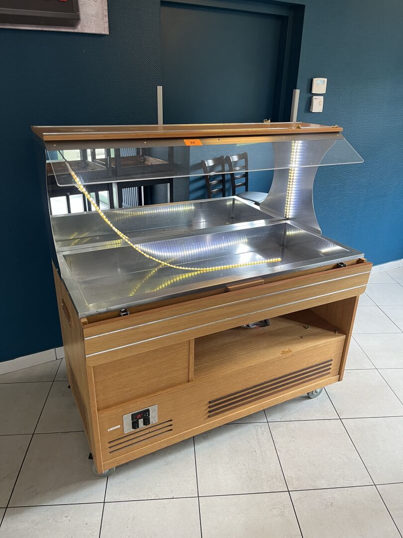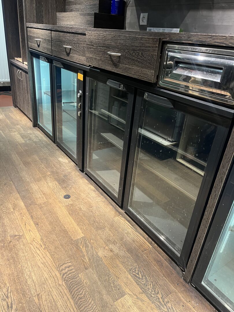 2 Vitrines GAMKO 2 ou 4 portes, Bain-maries BARTSCHER, Buffet réfrigéré, Buffet en chêne blanchi, Mobilier de restauration (environ 15 tables, 80 chaises)...