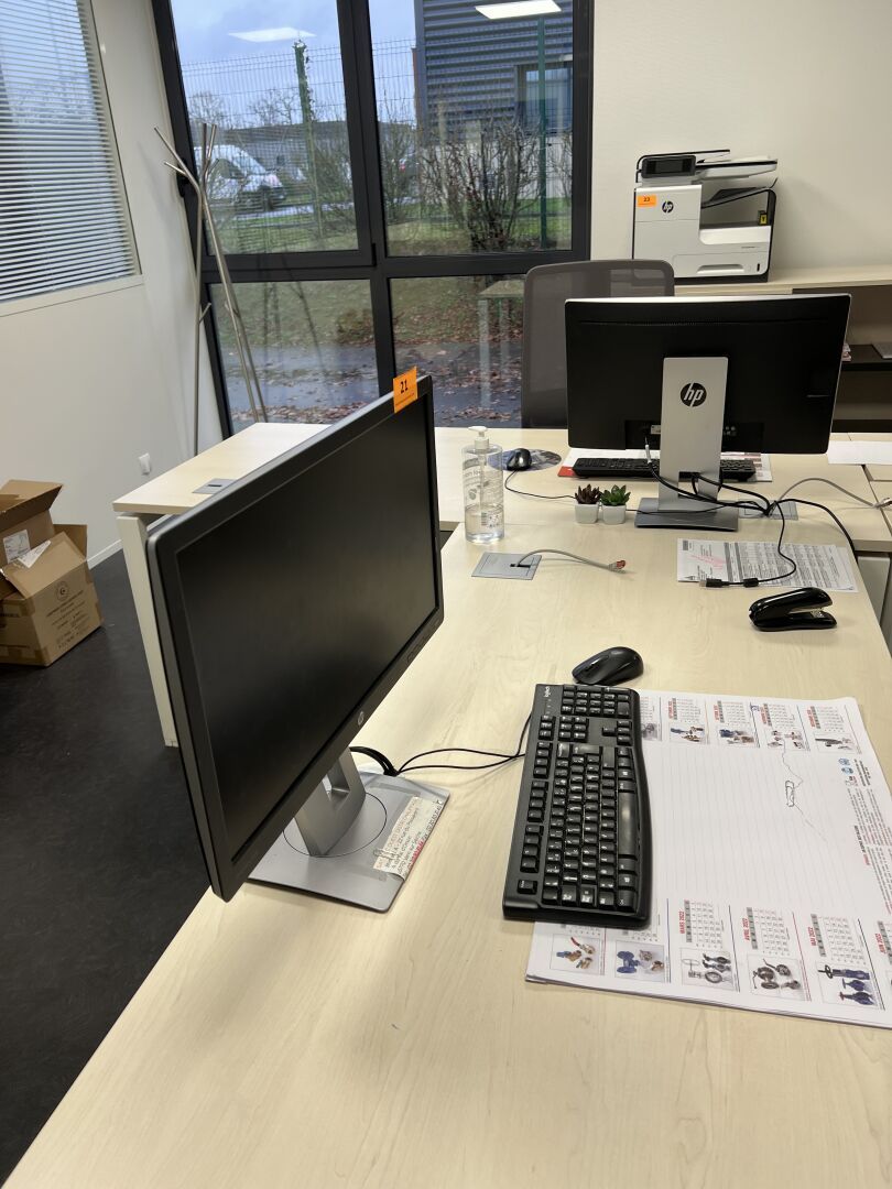 2 Ordinateurs HP comprenant 2 unités centrales, 2 écrans plats et 1 mini unité centrale HP
