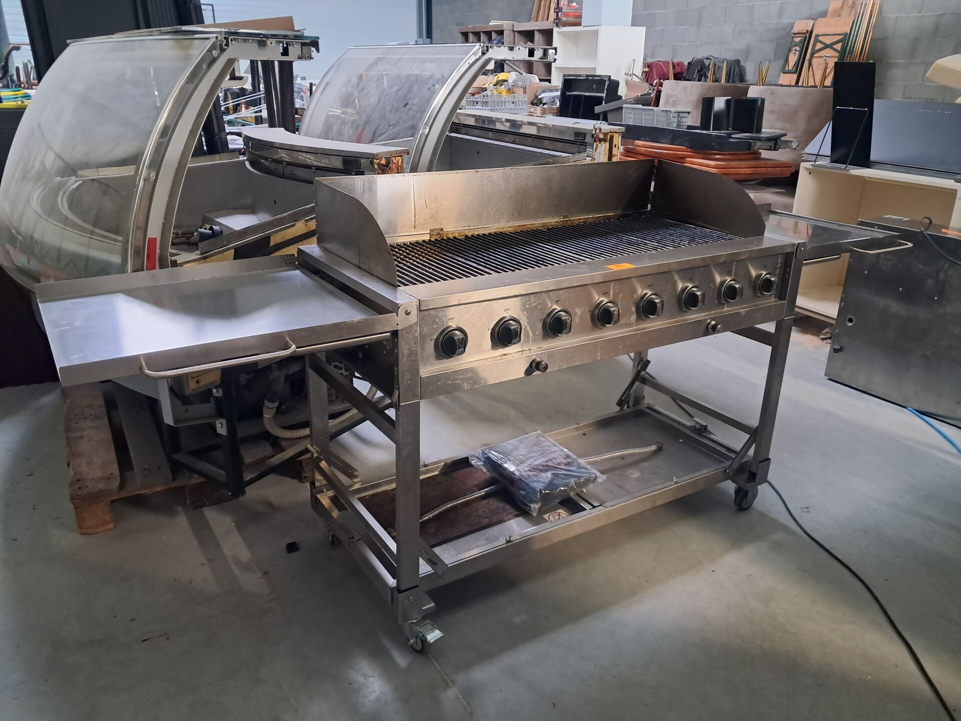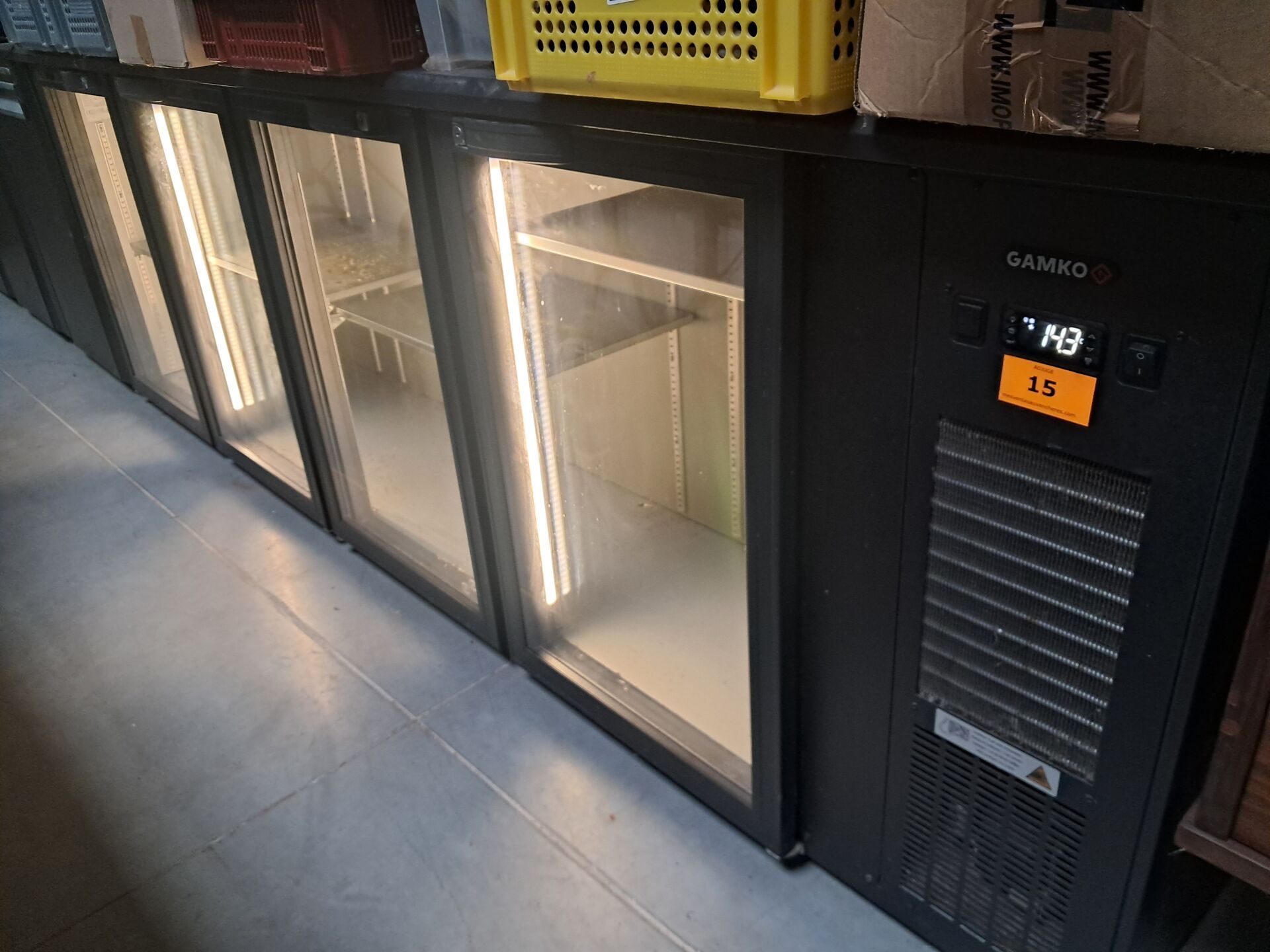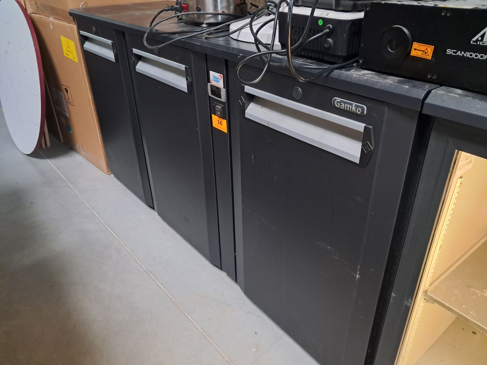Tours réfrigérés GAMKO (2023, 2018), Eplucheuse à pommes de terre SAMMIC (2025), Tunnel de lavage HOBART, Bar d’angle bois et métal, Plonge, Tables, Chaises*...